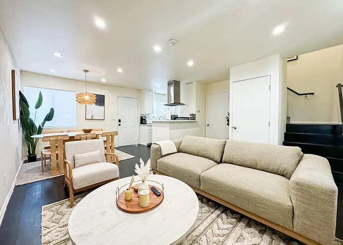 Hollywood Schriftzug ist ca. 25 Minuten Gehweg von der Unterkunft entfernt, und La Paco ist in einer 4 km Entfernung von der 1-Zimmer- Bohemian Dream- 2Br, Retreat Near Hollywood -Br6. Zu den kulturellen Sehenswürdigkeiten in der Nähe gehört Wachsfigurenmuseum Hollywood, der circa 15 Minuten Autofahrt von ist. Warner Bros lässt sich von hier aus innerhalb von 15 Minuten mit dem Auto erreichen.